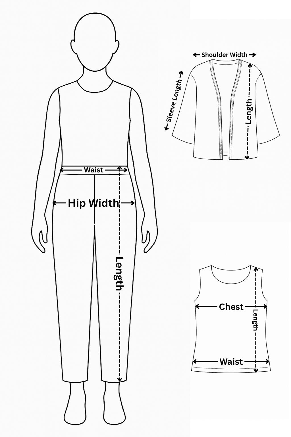All measurements are taken flat and may vary slightly due to hand measurement.